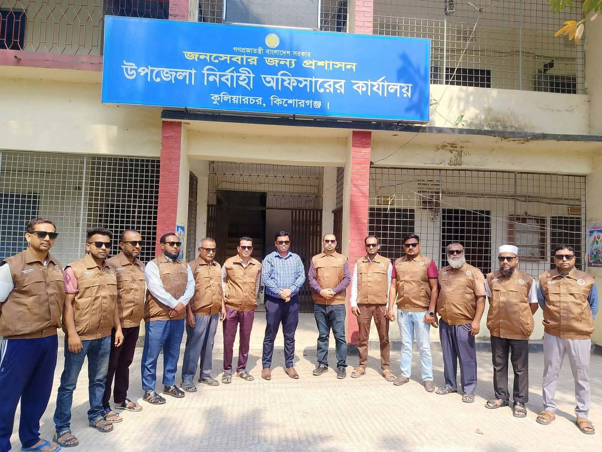 কিশোরগঞ্জের কুলিয়ারচর উপজেলা প্রশাসনের সেবাদানকারীদের মাঝে একই রকমের পোশাক বিতরণ করা হয়েছে।