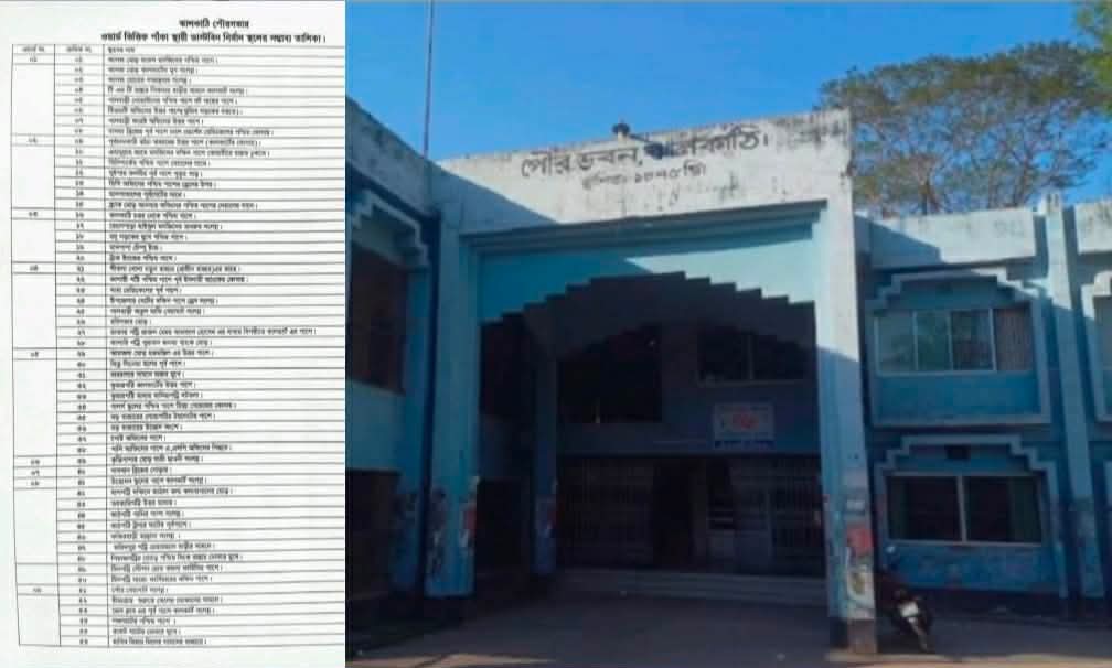 ঝালকাঠি পৌরসভায় পরিচ্ছন্ন নগর গড়তে ওয়ার্ডভিত্তিক ৫৬টি স্থানে স্থায়ী পাকা ডাস্টবিন নির্মাণের তালিকা প্রকাশ করেছে।